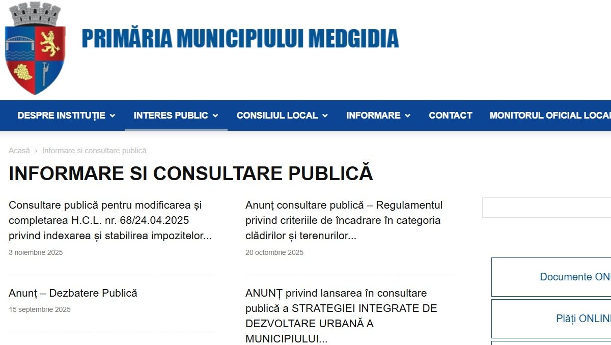 Materialele cu privire la tema dezbaterii au fost publicate și pot fi în continuare consultate pe site-ul Primăriei Municipiului Medgidia, la rubrica Interes Public, secțiunea Transparență decizională.